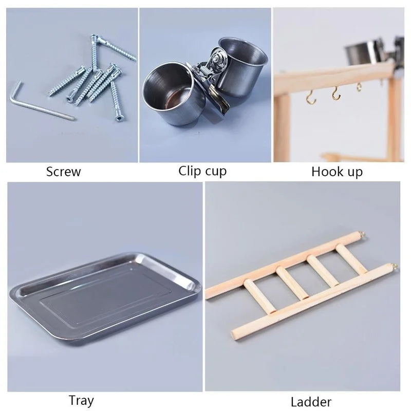 Bird Toy Activity Center – Cage Stand with Perch, Ladder, Hammock & Feeder