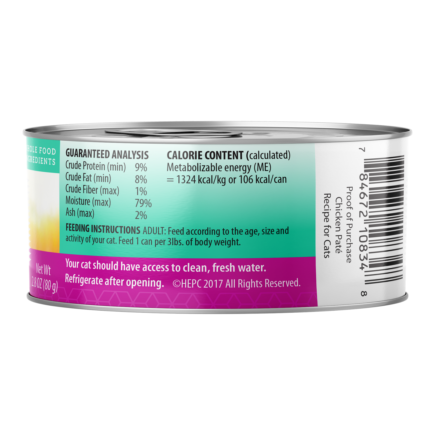 Holistic Health Extension Grain Free Chicken Paté Recipe is formulated to meet the nutritional levels established by the AAFCO Cat Food Nutrient Profiles for growth and maintenance.