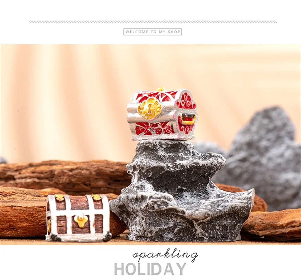 Mini Aquarium Ornament Simulation Treasure Chest Box Antique Resin Fish Tank Landscape