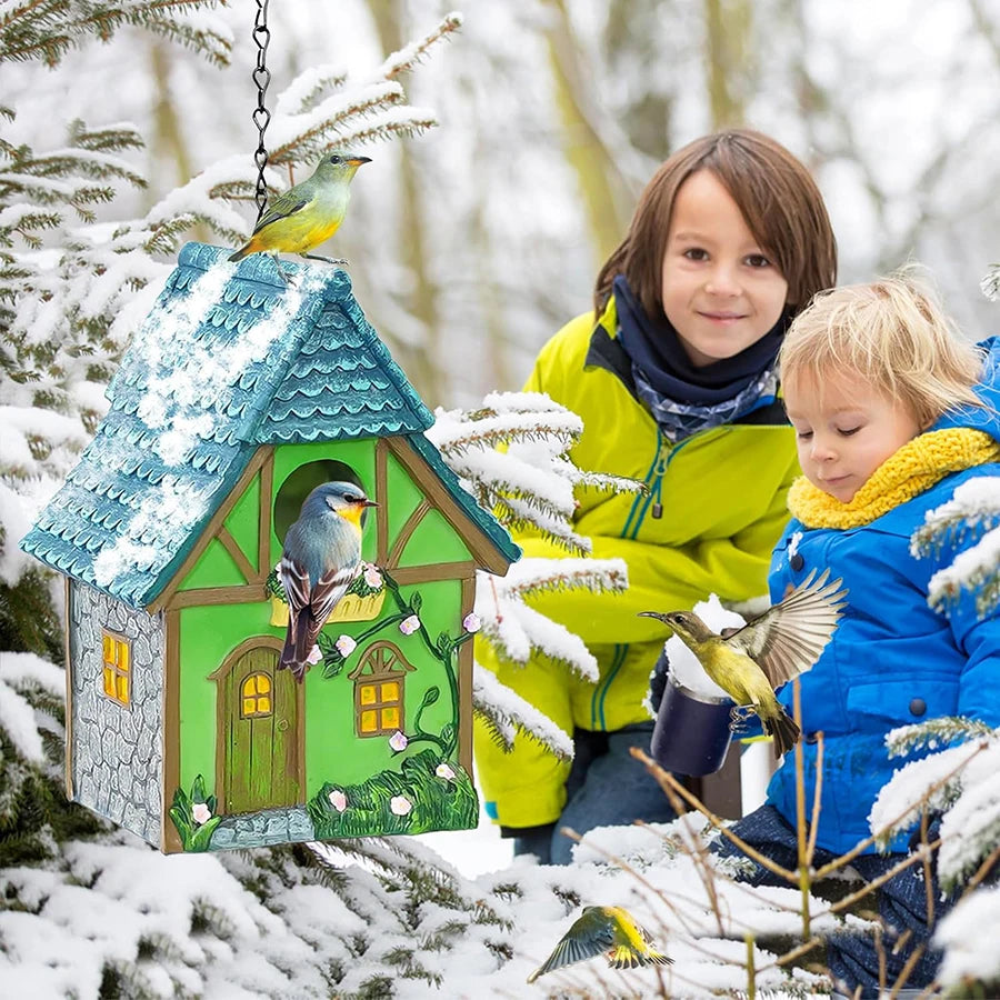 Outdoor Resin Birdhouse – Hanging Garden Cabin for Small Birds