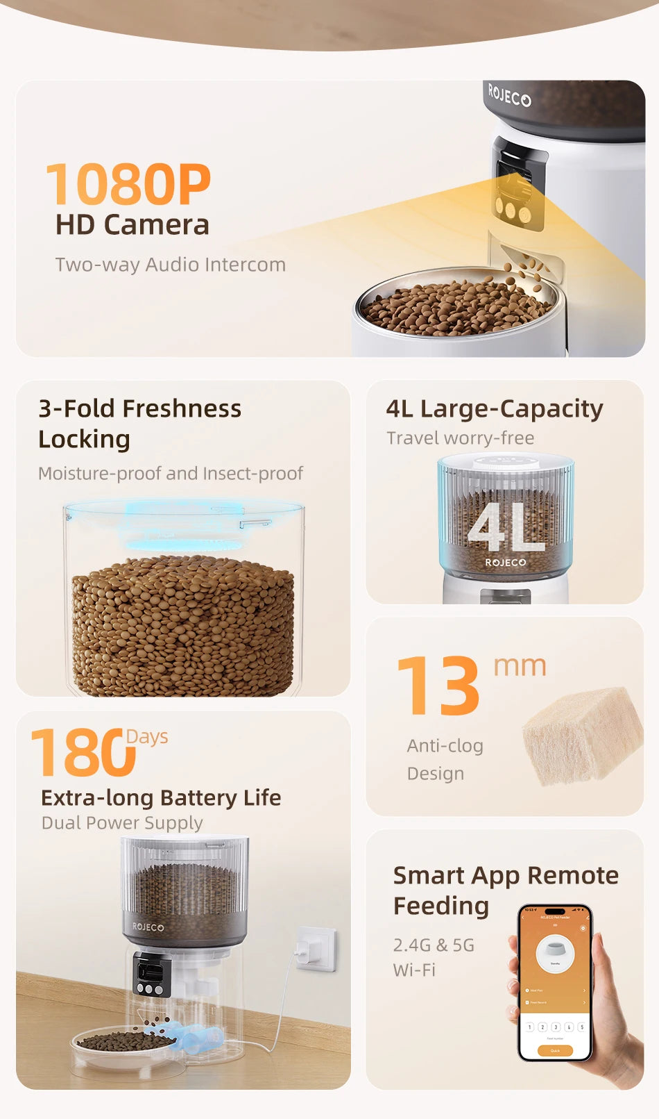Smart Automatic Cat & Dog Feeder with 1080P HD Camera – WiFi Controlled