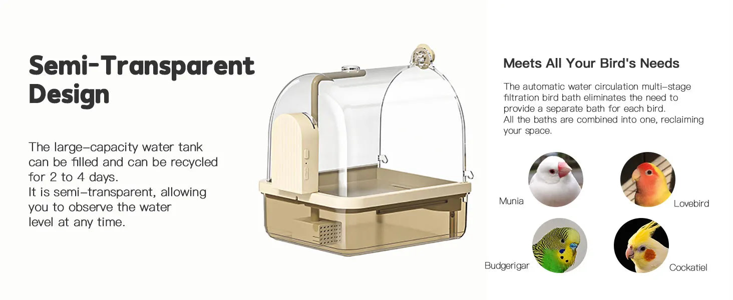 Keep your birds refreshed! This smart auto-sensing bird bath circulates water automatically, giving parakeets a fun shower experience. Easy to hang in cages, safe, and perfect for daily bird care.