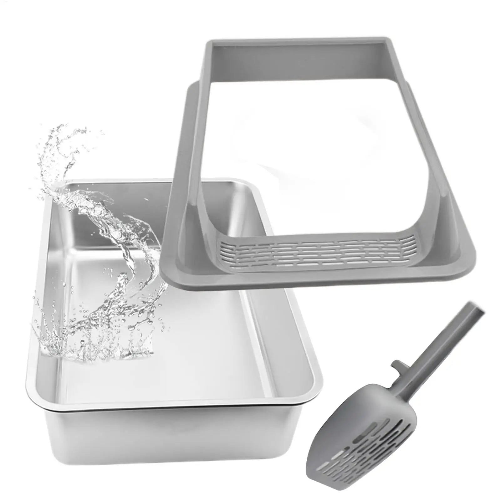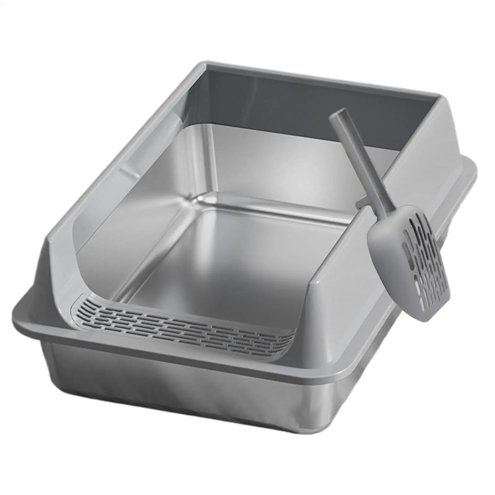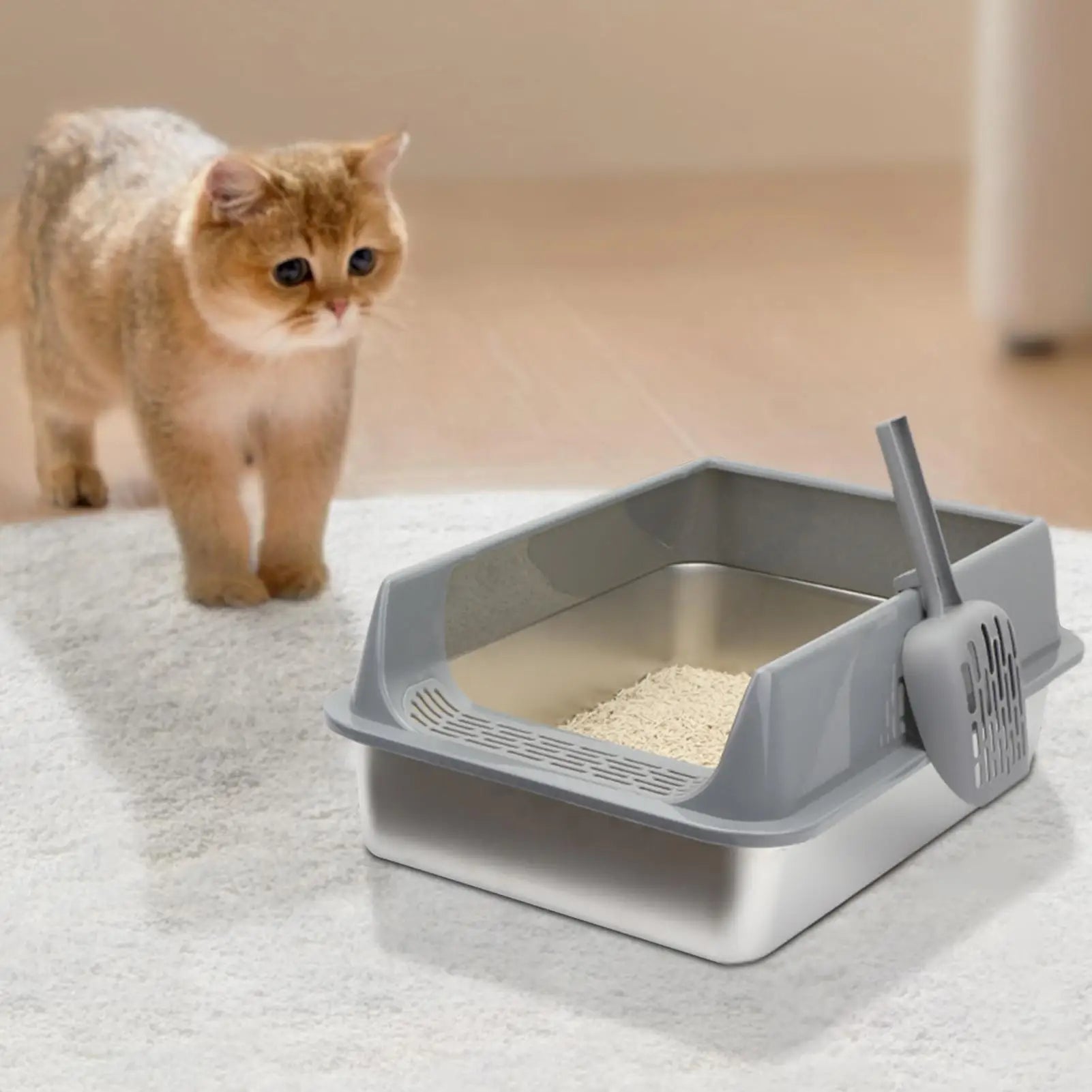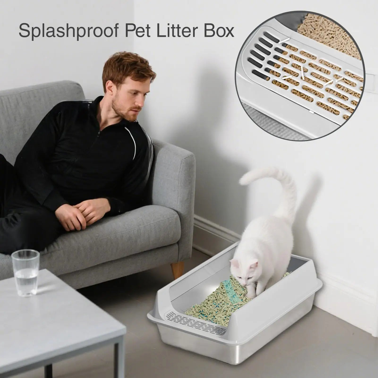 Stainless Steel High-Sided Cat Litter Box with Lid & Scoop