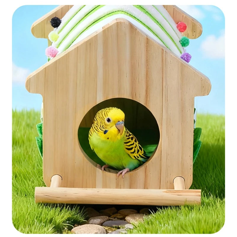 Cozy and colorful! This winter felt wood nest box provides a warm, safe, and comfortable breeding spot for parakeets, lovebirds, cockatiels, and parrotlets. Perfect for indoor cages, easy to hang, and ideal for happy nesting birds.