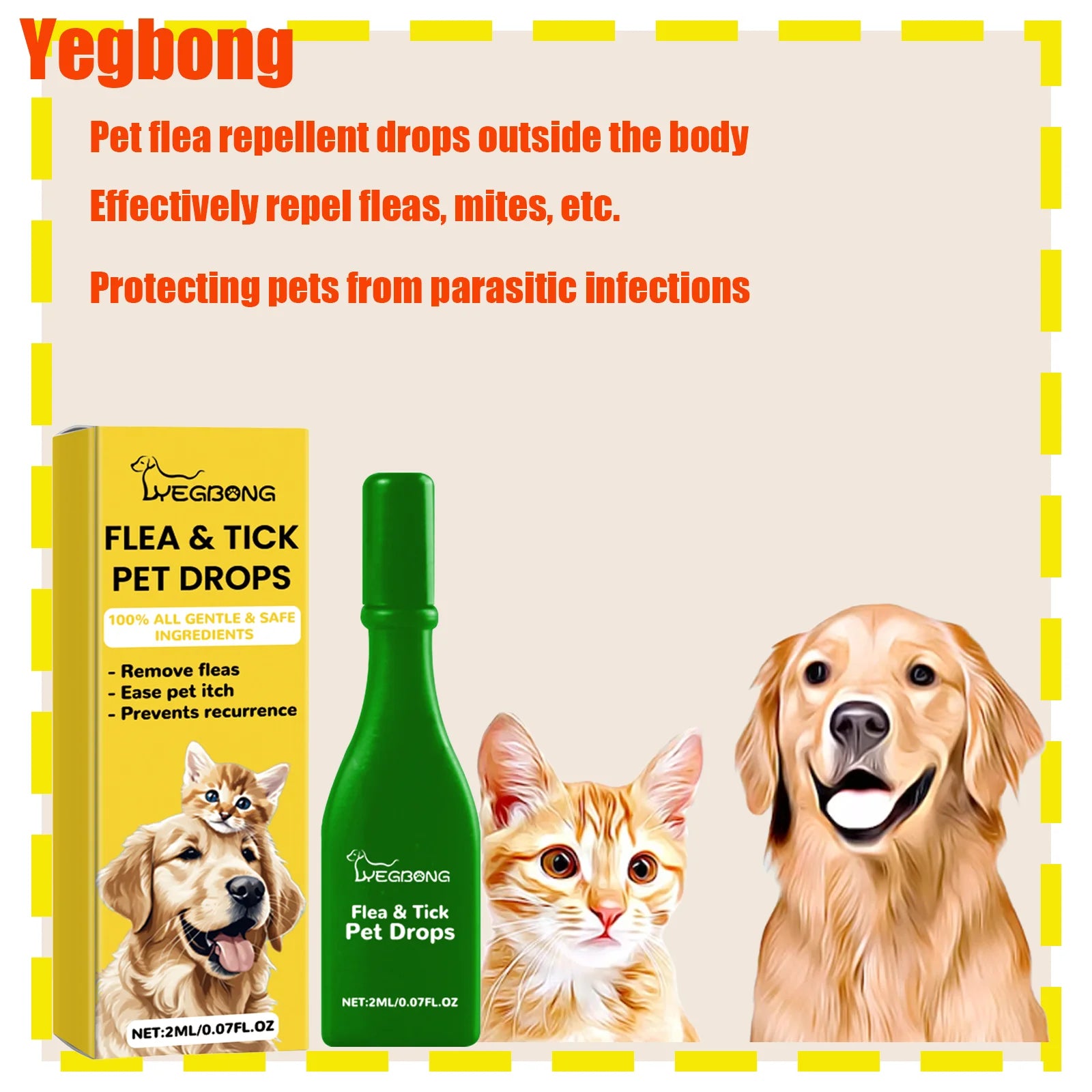 Yegbong Pet External Insect Repellent Droplets – Flea, Lice & Tick Control for Cats & Dogs, Anti-Itch Skin Care